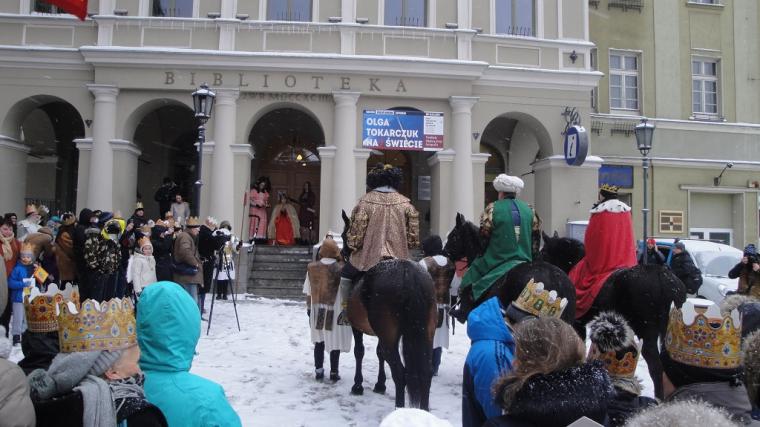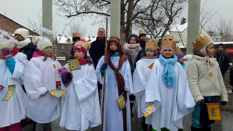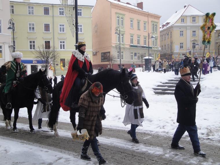 Ulicami Wałbrzycha przemaszerował dziś Orszak Trzech Króli ,organizowany jak co roku przez Fundację Orszak Trzech Króli. Współorganizatorami były władze Wałbrzycha oraz Szczawna Zdroju pod przewodnictwem Prezydenta Miasta Wałbrzycha - dr. Romana Szełemeja, wałbrzyskie parafie, a w szczególności organizacje katolickie, którym przewodniczył ks. prałat dr Krzysztof Moszumański, proboszcz parafii p.w. Niepokalanego Poczęcia NMP w Wałbrzychu. Wydarzenie rozpoczęło się o godz. 11.00 Mszą św. w parafii św. Aniołów Stróżów. Po Eucharystii przy kolegiacie uformował się orszak, który prowadzili siedzący na koniach trzej królowie: Kacper, Baltazar oraz Melchior. Orszak zatrzymał się u Heroda, który przywitał ich na wałbrzyskim Rynku. Scenka ta została odtworzona przez Prywatne Gimnazjum i Liceum Sióstr Niepokalanek w Wałbrzychu. Z Rynku trzej królowie wspólnie ze swoim orszakiem udali się do Miejskiego Ratusza, gdzie odbył się na ich cześć program wizualno-muzyczny, zorganizowany przez gimnazjum im. Korczaka w Wałbrzychu. Przemierzając ulice miasta orszak dotarł do swojego celu, tzn. do szopki Betlejemskiej. Odnalazł tam nowo narodzone dziecko z Matką Najświętszą oraz św. Józefem . Trzej królowie pokłonili się św. Rodzinie oraz wręczyli dary. Hołd, jaki złożyli Mędrcy ze Wschodu, jest znakiem, że i poganie zostali powołani do przyjęcia wiary. Część oficjalną wydarzenia zakończyły podziękowania ,złożone przez ks. prałata Krzysztofa Moszumańskiego wszystkim tym, którzy swoim zaangażowaniem przyczynili się do wspaniałej oprawy tego przedsięwzięcia. Lista była długa: począwszy od władz Wałbrzycha, Szczawna Zdroju, poprzez stadninę koni Książ, Teatr Dramatyczny im. Jerzego Szaniawskiego w Wałbrzychu, organizacji katolickich, szkół. Słowa podziękowania złożył dr Roman Szełemej, który wykorzystał tę okazję do wręczenia nagrody laureatom konkursu na najpiękniejszą szopkę Bożonarodzeniową. Około godziny 13.00 ks. prałat pobłogosławił licznie zebrane osoby. Po części oficjalnej piosenka Arki Noego "Świeć, gwiazdeczko, świeć" rozpoczęła wspólne radosne świętowanie poprzez śpiew wydarzenia przybycia trzech króli do szopki Betlejemskiej. Ulicami Wałbrzycha przemaszerował dziś Orszak Trzech Króli ,organizowany jak co roku przez Fundację Orszak Trzech Króli. Współorganizatorami były władze Wałbrzycha oraz Szczawna Zdroju pod przewodnictwem Prezydenta Miasta Wałbrzycha - dr. Romana Szełemeja, wałbrzyskie parafie, a w szczególności organizacje katolickie, którym przewodniczył ks. prałat dr Krzysztof Moszumański, proboszcz parafii p.w. Niepokalanego Poczęcia NMP w Wałbrzychu. Wydarzenie rozpoczęło się o godz. 11.00 Mszą św. w parafii św. Aniołów Stróżów. Po Eucharystii przy kolegiacie uformował się orszak, który prowadzili siedzący na koniach trzej królowie: Kacper, Baltazar oraz Melchior. Orszak zatrzymał się u Heroda, który przywitał ich na wałbrzyskim Rynku. Scenka ta została odtworzona przez Prywatne Gimnazjum i Liceum Sióstr Niepokalanek w Wałbrzychu. Z Rynku trzej królowie wspólnie ze swoim orszakiem udali się do Miejskiego Ratusza, gdzie odbył się na ich cześć program wizualno-muzyczny, zorganizowany przez gimnazjum im. Korczaka w Wałbrzychu. Przemierzając ulice miasta orszak dotarł do swojego celu, tzn. do szopki Betlejemskiej. Odnalazł tam nowo narodzone dziecko z Matką Najświętszą oraz św. Józefem . Trzej królowie pokłonili się św. Rodzinie oraz wręczyli dary. Hołd, jaki złożyli Mędrcy ze Wschodu, jest znakiem, że i poganie zostali powołani do przyjęcia wiary. Część oficjalną wydarzenia zakończyły podziękowania ,złożone przez ks. prałata Krzysztofa Moszumańskiego wszystkim tym, którzy swoim zaangażowaniem przyczynili się do wspaniałej oprawy tego przedsięwzięcia. Lista była długa: począwszy od władz Wałbrzycha, Szczawna Zdroju, poprzez stadninę koni Książ, Teatr Dramatyczny im. Jerzego Szaniawskiego w Wałbrzychu, organizacji katolickich, szkół. Słowa podziękowania złożył dr Roman Szełemej, który wykorzystał tę okazję do wręczenia nagrody laureatom konkursu na najpiękniejszą szopkę Bożonarodzeniową. Około godziny 13.00 ks. prałat pobłogosławił licznie zebrane osoby. Po części oficjalnej piosenka Arki Noego "Świeć, gwiazdeczko, świeć" rozpoczęła wspólne radosne świętowanie poprzez śpiew wydarzenia przybycia trzech króli do szopki Betlejemskiej.