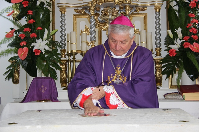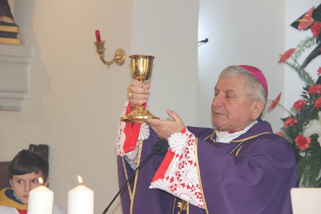 Wskazywał na rolę, jaką pełni świątynia. – Najważniejszym miejscem w świątyni jest tabernakulum. Nigdzie na kartach Pisma Świętego nie znajdziemy, że Pan Bóg domaga się od ludzi złotego tabernakulum i bogatych świątyń. Pan Bóg chce mieszkać w nas. Wy jesteście świątynią Pana, bo każdy człowiek jest stworzony na obraz i podobieństwo Boże, a świątynia budowana jest po to, aby sprawować święte sakramenty. My dzisiaj tę świątynię konsekrujemy na chwałę Pana Boga – mówił kaznodzieja.
