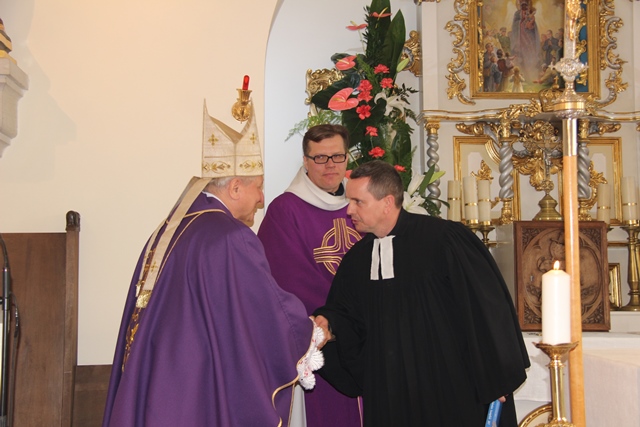 Przed zakończeniem Mszy św. ks. Rafał Miller podziękował katolikom za to, że ta świątynia nie stała się magazynem, ale pełni swoją rolę. - Dziękuję Wam, że to miejsce jest wciąż Bożym miejscem. Jako ewangelik i chrześcijanin dziękuję Wam za to, że te mury przepełniacie modlitwą. Niech Bóg Wam błogosławi. Ewangelicy wybudowali tę świątynię i dzisiaj radują się, że katolicy z tego korzystają. Z tego jestem dumny i szczęśliwy – powiedział pastor parafii ewangelicko-augsburskiej w Sycowie.