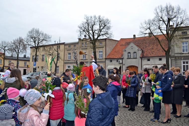 Około godz. 11:00 na mikstacki Rynek zaczęły przychodzić dzieci z palmami  w rękach, ale nie brakowało także osób dorosłych. O godz. 11:00 w mikstackim wieczerniku w niedziele sprawowana jest Msza Święta ze szczególnym udziałem dzieci i młodzieży. O godzinie jedenastej w asyście ministrantów niosących krzyż na Rynek przybył ks. wikariusz Krzysztof Lipiński, który po odmówieniu specjalnej modlitwy pobłogosławił palmowe gałązki. Następnie procesjonalnie za krzyżem zgromadzeni na Rynku młodsi i starsi parafianie ze śpiewem na ustach, z palmami  w rękach udali się na Mszę Świętą do kościoła farnego. Tu ks. Krzysztof pobłogosławił palmy zgromadzonych w kościele, następnie rozpoczęła się Msza Święta podczas której odczytany został  opis Męki Pańskiej. Podczas Mszy Świętej śpiewał parafialny zespół młodzieżowy.