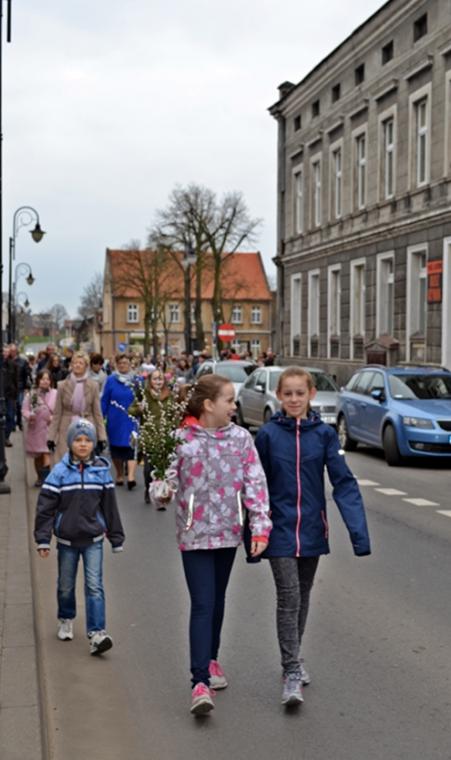 W Marszu dla Jezusa uczestniczyły przede wszystkim młodsze dzieci oraz osoby dorosłe. Młodzież, jak to już się stało tradycją w południe udała się wraz z s. Ewą Szczutkowską i  z ks. wikariuszem Krzysztofem na Górę Krzyża, by tam uczestniczyć w Diecezjalnym Spotkaniu Młodzieży. Niedziela Palmowa rozpoczyna Wielki Tydzień, szczególny czas refleksji, modlitwy, zadumy, ale także trwania przy Chrystusie. Uczestniczący w   marszu dla Jezusa dali świadectwo swej wiary, tak bardzo  wymowne wpisujące si w hasło roku duszpasterskiego „ Idźcie i głoście”. Szli i głosili „Hosanna, hosanna, Synowi Dawidowemu…”