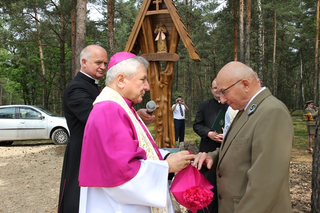 Biskup kaliski Edward Janiak poświęcił w lesie kapliczkę z figurą Jezusa Miłosiernego, którą ufundował odchodzący na emeryturę leśniczy leśnictwa Kazala w Nadleśnictwie Kalisz.