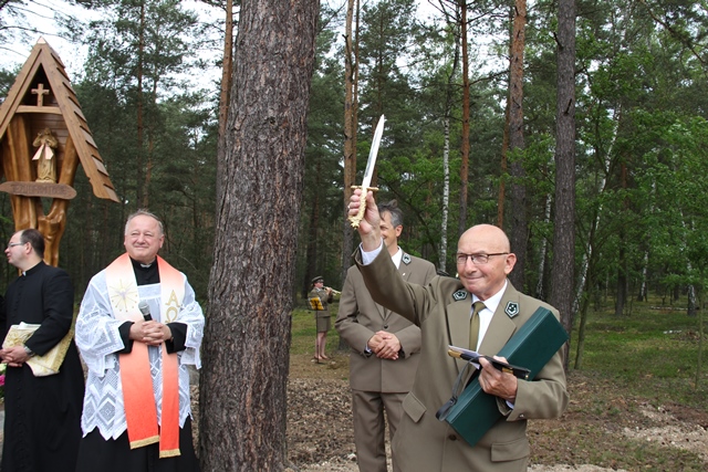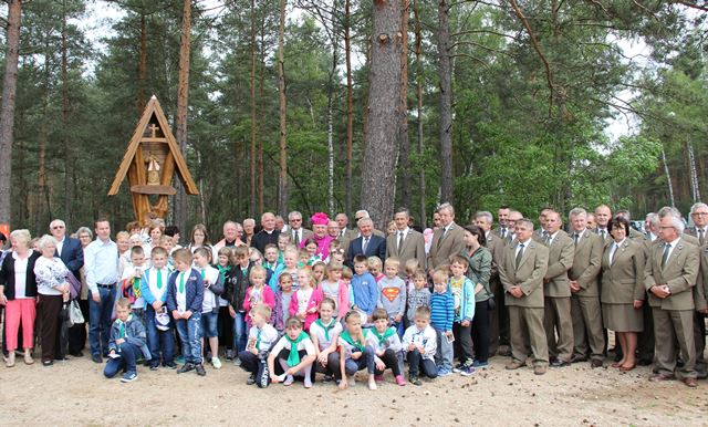 W uroczystości uczestniczyli także ks. prał. Marian Andrzejewski, proboszcz parafii św. Wojciecha Biskupa w Kościelcu Kaliskim, wójt gminy Mycielin Jerzy Matuszewski, dyrektor Ośrodka Kultury Leśnej w Gołuchowie Benedykt Roźmiarek, nadleśniczy Nadleśnictwa Kalisz Wiesław Chojnacki, uczniowie szkoły podstawowej, leśnicy i społeczność lokalna.