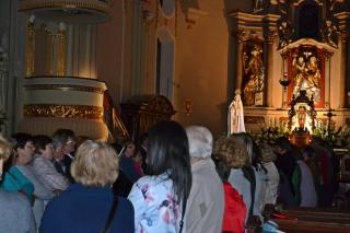 W rozważaniu poprzedzającym modlitwę różańcową ks. kan. Krzysztof przybliżył parafianom stan serc fatimskich pastuszków. Podkreślił, że byli oni posłuszni swoim rodzicom, pełni prostoty i czystości. Jak wskazał, to zapewne było powodem tego, że to właśnie im Maryja powierzyła misje zaniesienia światu swego przesłania. W dalszej części rozważania ks. kanonik przypomniał uczestnikom modlitewnego spotkania treść drugiego objawienia. Zaakcentował rolę i znaczenie ustanowienia nabożeństwa do Niepokalanego Serca Maryi. Podkreślając znaczenie wspólnoty i pracy nad sobą powiedział m.in. „ Nasza parafialna wspólnota ma również swoje serce. Ono bije w każdym z nas. Wciąż uczymy się jaką powinniśmy być wspólnotą. Zadania te wynikają z naszego chrztu. Ponieważ jednak nasza ludzka natura skłonna jest do grzechu, dlatego wciąż modlimy się , pracujemy nad sobą, aby nasze serca były podobne do Serca Pana Jezusa i Niepokalanego Serca Maryi”. Ks. kan. podkreślił, że w wielu miejscach, gdzie miały miejsce objawienia Matki Bożej gromadzą się tłumy wiernych, którzy chcą dotknąć tajemnicy Niepokalanego Serca Maryi. Kończąc rozważanie ks. kan. powiedział: „ My zgromadzeni na nabożeństwie fatimskim odmawiamy różaniec, śpiewamy pieśni maryjne, prosimy Maryję o wstawiennictwo u Trójjedynego Boga we wszystkich naszych potrzebach. Tym samym jesteśmy wspólnotą , której celem jest sam Bóg”. Po zakończeniu rozważania rozpoczęliśmy modlitwę różańcową. Przy pięknie przyozdobionej figurze Pani Fatimskiej nie mogło zabraknąć pastuszków. W ich postacie wcieliły się dzieci z naszej parafii. Ku niebu popłynęła modlitwa, o którą nieustannie prosiła i prosi Maryja… W kontemplowaniu tajemnic różańca pomocne były rozważania ks. kanonika. Przed rozpoczęciem czwartej tajemnicy ks. kan. od świecy płonącej przy figurze odpalił świece pastuszków. Ci zanieśli to światło do uczestników nabożeństwa. Po zakończonej modlitwie różańcowej wyruszyliśmy w procesji z figurą Fatimskiej Pani zapalonymi świecami wokoło kościoła. Podczas procesji rozległo się bicie dzwonów w mikstackiej świątyni. Wzywają nas one i przypominają codziennie od dnia nawiedzenia o Apelu Jasnogórskim. Gdy procesja powróciła do kościoła w duchowej łączności z Jasną Górą śpiewaliśmy: Maryjo jestem, pamiętam, czuwam! Po końcowym błogosławieństwie wierni otoczyli figurę Fatimskiej Pani i zaśpiewali pieśń „ Zapada zmrok…”. Wypowiedziane z życzliwością i uśmiechem słowa „ Dobrze, że jesteś” do osób stojących najbliżej nas uświadomiły nam, że naprawdę jesteśmy wspólnotą. I jeszcze jedna refleksja. Pięknie prezentowała się udekorowana kwiatami Fatimska Pani, ale co najważniejsze otoczona była sercami kochających Ją ludzi.