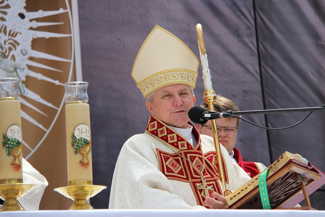 Odwołując się do hasła czwartego ołtarza „Ojcze spraw, aby byli jedno” zaznaczył, że Jezus odchodząc prosił apostołów, aby byli jedno. – Tam, gdzie jest prawda, miłość, sprawiedliwość rodzi się jedność, bliskość, przyjaźń. Bądźmy apostołami jedności w naszych rodzinach, pracy, sąsiedztwie, w naszym mieście, naszym narodzie. Budujmy tę jedność na Chrystusie i Eucharystii – wskazywał ordynariusz diecezji kaliskiej.