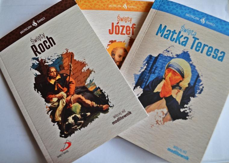Tym razem chciałabym jednak zwrócić uwagę na kolejną, niezwykle wartościową i ważną serię: Skuteczni Święci. Już przyglądając się okładce zauważymy intrygujący napis: „ Więcej niż modlitewnik”. Gdy zajrzymy do środka ujrzymy kartkę z kalendarza z dniem wspomnienia Świętej bądź Świętego, któremu poświęcona jest dana książeczka. Dlaczego jest to więcej niż modlitewnik? Bo zawiera także opis życia, drogi, która doprowadziła daną osobę do świętości. Potrzebuje współczesny człowiek takiego czasu zatrzymania się, refleksji nad tym dokąd zmierza, jaki jest cel jego ziemskiej wędrówki. Prezentowane w serii Skuteczni Święci postacie pokazują, jak różnymi drogami prowadzi Bóg czasami człowieka, jak różne drogi prowadzą do świętości. Mogą stanowić zachętę do podjęcia trudu pracy nad sobą, przemiany życia. W serii Skuteczni Święci prezentowane są postacie zarówno tych Świętych, którzy żyli przed wiekami jak na przykład Święty Józef, Święty Krzysztof, Święty Antoni, Święty Roch, ale i ci którzy swoją wędrówkę do Ojczyzny niebieskiej zakończyli stosunkowo niedawno, a już ogłoszeni zostali przez Kościół Świętym. Wspomnę tu Świętego Ojca Pio, Świętą Matkę Teresę, Świętego Jana Pawła II.