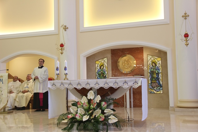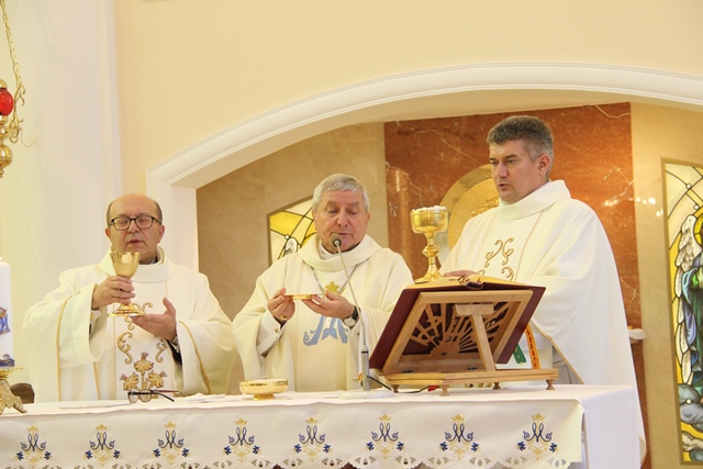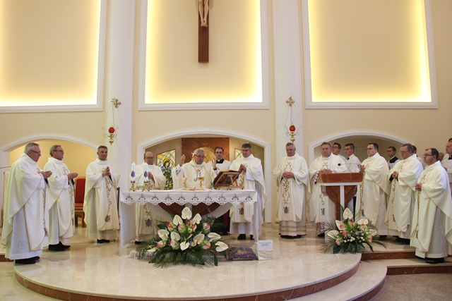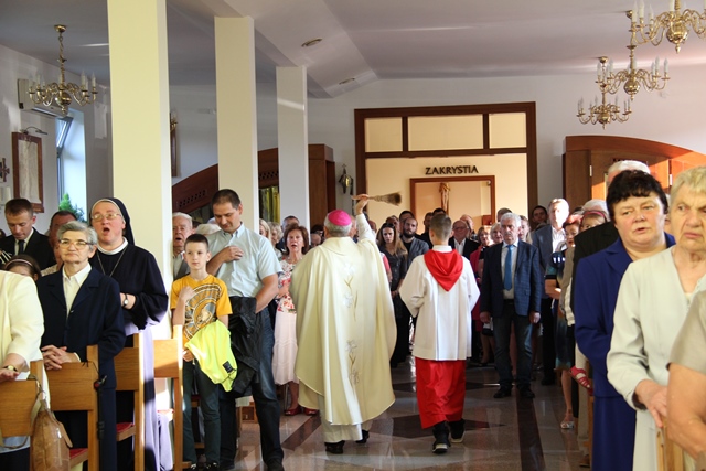 Witając biskupa, kapłanów i wiernych ks. Robert Lewandowski podkreślał, że ta świątynia została wybudowana trudem wielu ludzi. Dodał, że nie byłoby jej, gdyby nie charyzmatyczna postawa i szlachetne kapłańskie życie ks. prał. Józefa Sieradzana, który latach 80. odkrył potrzebę stworzenia w tym miejscu ośrodka duszpasterskiego, a potem parafii.