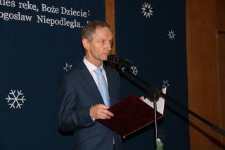 Po odczytaniu fragmentu Ewangelii o Bożym Narodzeniu kapelan szpitala ks. kan. Arkadiusz Hajdasz wskazywał, że szpital to sanktuarium ludzkiego cierpienia. – Cieszę się, że towarzyszy nam motto zaczerpnięte od ojca medycyny Hipokratesa „zdrowie chorego najwyższym prawem”. Macie Państwo dobre i ofiarne serca, jesteście szlachetnymi ludźmi i za to wam dziękuję, że na co dzień służycie sercem i ofiarą. Niech ten czas świąteczny będzie czasem wielkiej miłości, którą będziemy wzajemnie sobie świadczyć – powiedział kapelan szpitala.