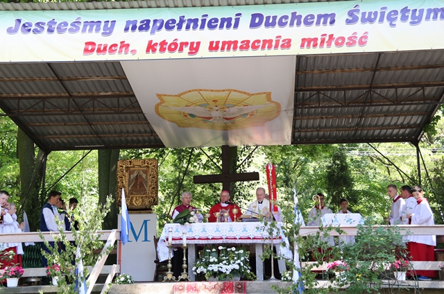 Podkreślił, że przeżywanie odpustu Zesłania Ducha Świętego w Tursku ma specyfikę wyjątkowo Maryjną i przypomniał, że 254 lata temu, w wigilię Zesłania Ducha Świętego, do Turska przybył obraz Matki Bożej, nazwany później Łaskawą. – Tutaj dokonało się coś co jest niewytłumaczalne. Wizerunek Matki Bożej przyfrunął i zatrzymał się, jakaś dziwna moc go przyniosła mimo bezwietrznej aury. Było to w okresie, kiedy przeżywano Zesłanie Ducha Świętego, więc pobożność ludowa, aby upamiętnić to niezwykłe zaistnienie Maryi w Tursku postanowiła, aby Zesłanie Ducha Świętego było przeżywane przez trzy dni – wyjaśniał celebrans.