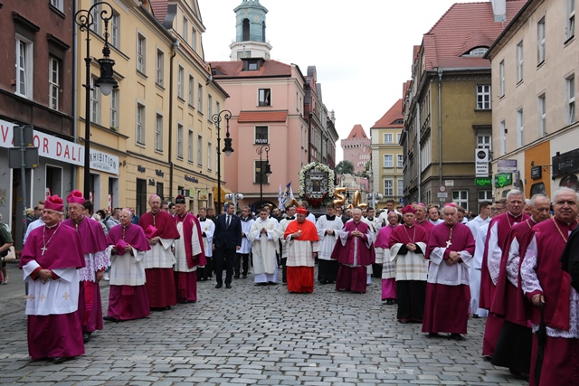 Po Mszy św. wyruszyła procesja z obrazem Matki Bożej w Cudy Wielmożnej Pani Poznania do katedry pod przewodnictwem prymasa Czech kard. Dominika Duki, legata papieskiego na obchody jubileuszowe.