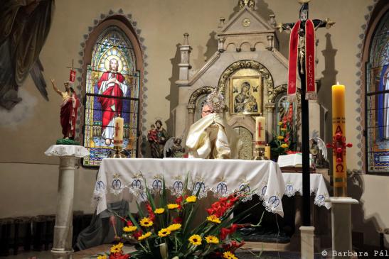 Wierni - m.in. Polonia z Budapesztu, Tatabánya, Veszprém i Dunaújváros, w obecności ambasadora RP na Węgrzech p. Sebastiana Kęcieka wraz z rodziną - podczas Mszy św. odpustowej sprawowanej przez proboszcza Polskiej Parafii Personalnej na Węgrzech ks. Krzysztofa Grzelaka SChr. modlili się o dary i łaski dla całej wspólnoty polonijnej i braci Węgrów, którzy obok Polaków od blisko 96 lat przychodzą do naszej kőbányszkiej świątyni. Proszono Matkę Bożą o pokonanie lęku wobec świata i wobec zła. Proszono o pokój dla świata i ustanie wojen, o wstawiennictwo dla całej Polonii na świecie aby dawała świadectwa wiary i naszej polskiej tożsamości. Mszę św. zakończyło wspólne odmówienie Litanii Loretańskiej i wystawienie Najświętszego Sakramentu.