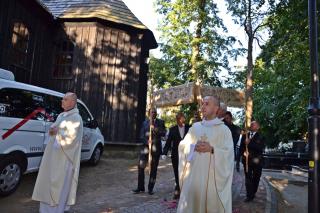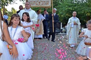 Przed zakończeniem Eucharystii Ksiądz Mateusz, Dyrektor Diecezjalnego Radia Rodzina i Telewizji Internetowej Dom Józefa zachęcał uczestników modlitewnego spotkania zarówno tych zgromadzonych w sanktuarium i wokół niego, jak i łączących się z nami duchowo dzięki transmisji do korzystania z dostępnych mediów. Wielu z nas jest wiernymi słuchaczami audycji Radia Rodzina i widzami programów TV Dom Józefa, ale mamy nadzieją, że radiowo- telewizyjna transmisja przyczyni się do powiększenia grona słuchaczy i widzów. Naprawdę warto, bo propozycji audycji radiowych i telewizyjnych jest wiele i są bardzo różnorodne. Każdy może w nich znaleźć coś dla siebie. Ponadto ks. Mateusz przybliżył słuchaczom i widzom postać św. Rocha i specyfikę mikstackiego sanktuarium. Zwrócił uwagę, że dzięki transmisjom różnych uroczystości mamy okazję poznawać piękne kościoły i sanktuaria znajdujące się na terenie naszej diecezji.