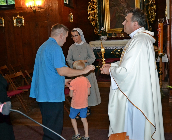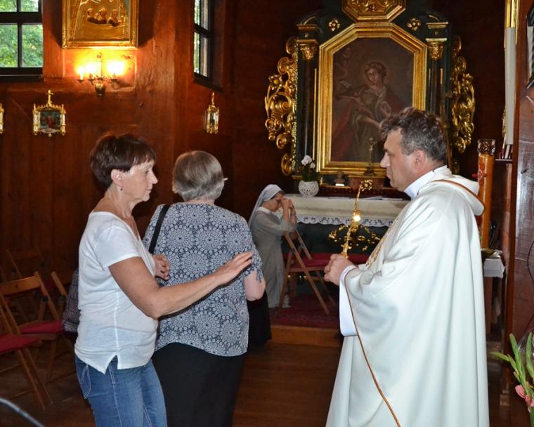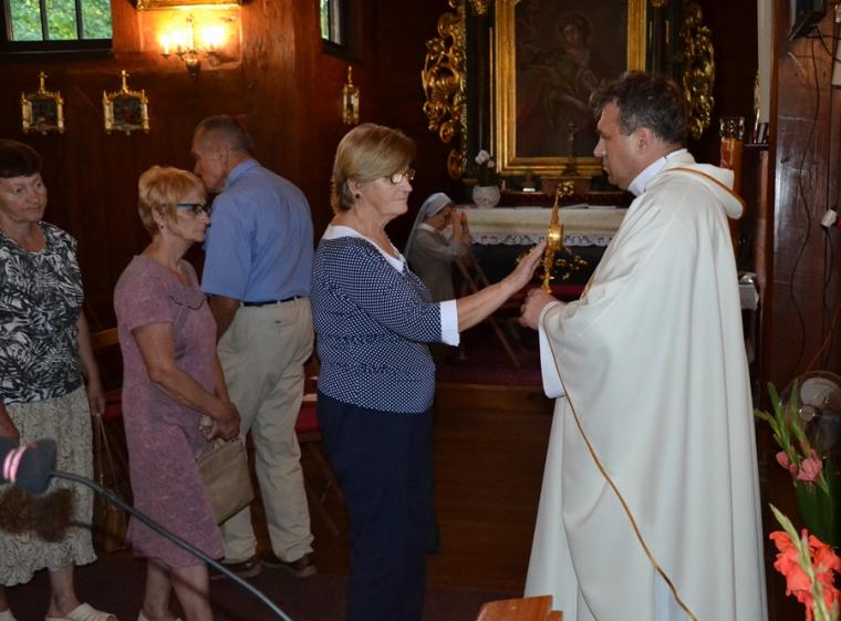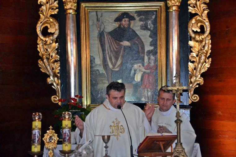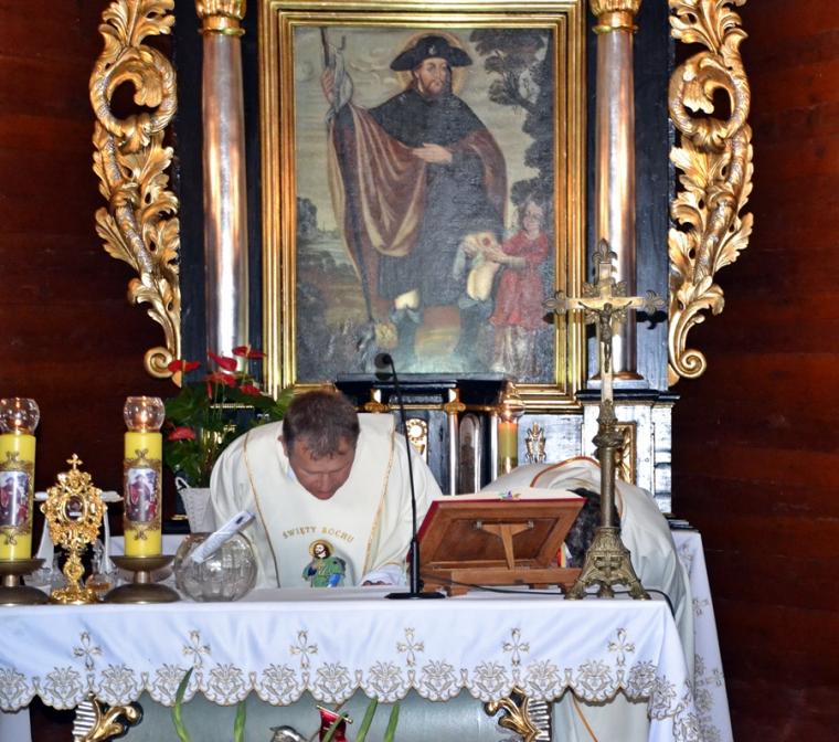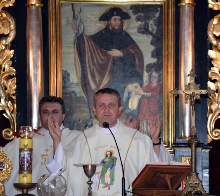 Dorośli parafianie i pielgrzymi przygotowują się do uroczystości odpustowych poprzez udział w mszach św.  podczas których,  głoszone są nauki. W tym roku głosi je ks. Sebastian Łagódka. W drugim dniu  przygotowań duchowych do uroczystości odpustowych o godz. 18:00 odmówiony  został różaniec. Dlaczego właśnie to modlitwa? Bo nasz niebieski patron był wielkim czcicielem Matki Bożej, a na naszym obrazie przedstawiony jest z różańcem zwisającym u pasa. Po różańcu odśpiewane zostały Godzinki o świętym Rochu Wyznawcy.  O godz. 18:30 rozpoczęła się Eucharystia, której przewodniczył ks. Sebastian Łagódka, zaś współcelebransem był ks. kan. Krzysztof Ordziniak. Podczas tej mszy świętej wierni wysłuchali kolejnej konferencji. Przypomnijmy, w pierwszej ksiądz rekolekcjonista skoncentrował uwagę na chrzcie, który  jest punktem wyjścia naszej wiary, zanurza nas w łasce Bożej. Zachęcał, byśmy rozbudzili w sobie pragnienia całkowitego zanurzenia naszego życia w Bogu. Ksiądz Sebastian zwrócił uwagę, że istnieje niebezpieczeństwo, że zamiast zanurzyć się w Bogu, przyjąć to co daje on nam każdego dnia, próbujemy stawia warunki. Podkreślił, że w dniu chrztu  zostaliśmy naznaczeni znakiem  krzyża, znak błogosławieństwa.  To właśnie znak krzyża stał się   myślą przewodnią czwartkowej konferencji. Kontynuując kaznodzieja nawiązał do znaku krzyża, którym naznaczony był święty Roch. Podkreślił, że krzyż był mocno obecny w jego życiu, także w postaci cierpienia. Kontynuując kapłan powiedział: „ Zostaliśmy naznaczeni krzyżem to znaczy, że nasza wiara nie może nigdy wyrzec się krzyża i nie może uciekać od krzyża”. Dzieląc się swoim spostrzeżeniem z kapłańskiej posługi zaakcentował, że ludzie czasami ulegają pokusie chrześcijaństwa bez krzyża. Polega ona na myśleniu, że jeśli będziemy chodzić do kościoła, modlić się, spowiadać regularnie to ominą nas w życiu wszystkie trudności. Gdy te trudności się pojawiają człowiek zaczyna robić Bogu wyrzuty, stawiać Bogu pytanie: dlaczego mi to robisz? Jest to efektem niewłaściwego pojmowania wiary. Nawiązując do słów Ewangelii podkreślił, że uczniowie Jezusa usłyszeli słowa o czekającym cierpieniu, ale nie usłyszeli o tym, że zmartwychwstanie. Kaznodzieja wskazał, że Jezus mówił o tym, że na drodze wiary jest krzyż. Zaakcentował, że nam potrzebny jest krzyż. Ksiądz Sebastian przywołał słowa papieża Franciszka: „Nie chciejcie Chrystusa bez krzyża. Chrystus bez krzyża nie jest zbawicielem jest tylko nauczycielem, jest tylko człowiekiem z dobrą prawdą”. Kontynuując ksiądz rekolekcjonista  podkreślił, że Zbawicielem jest ten, który umiera na krzyżu i zmartwychwstaje. Zaznaczył, że krzyż bez Chrystusa jest czymś co nas przygniata. W dalszej części konferencji ks. Sebastian zaznaczył, że człowieka prędzej czy później doświadczy krzyża. Zwrócił uwagę, że gdy chcemy zrobić coś dobrego, wymaga to od nas wysiłku, trudu, czynienie zła przychodzi nam znacznie łatwiej. Podkreślił, że cierpienie, śmierć są efektem zawiści diabła.
