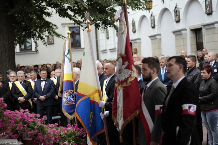 Pielgrzymka żołnierzy AK, kombatantów, żołnierzy represjonowanych i Rycerzy Kolumba przybyła na sumę o godzinie 11:00. Mszę Świętą odprawił oraz homilię wygłosił ks. prałat Władysław Pasiut. Na początku homilii zwrócił on naszą uwagę na wyjątkowość wydarzeń opisywanych przez dzisiejszą Ewangelię – obecność Ducha Świętego w spotkaniu brzemiennych Maryi i Elżbiety oraz prorockie znaczenie kantyku Maryi. Kaznodzieja zaznaczył, że tak jak Jan Chrzciciel wskazał Zbawiciela, tak Matka Boża Tuchowska, wskazując na swojego syna, pokazuje nam naszego Zbawiciela. Ksiądz prałat, wspomniał też o wadze sakramentu pokuty i pojednania oraz podziękował redemptorystom – w 125. rocznicę obecności w Tuchowie – za ofiarność w posłudze w konfesjonałach. Następnie kaznodzieja zaznaczył, że Matka Boża wciąż okazywała wielką troskę narodowi polskiemu, podziękował też wszystkim, którzy walczyli o wolność naszego kraju. Ks. prałat Władysław Pasiut prosił gorąco, abyśmy nie zatracili swojej tożsamości, lecz dbali o nią przez pielęgnowanie tradycji oraz cześć oddawaną Bogu za pośrednictwem Maryi. Przypomniał też o Chrystusowym wezwaniu do miłości Boga i bliźniego. Jednym z wymiarów tej miłości jest trwanie w nauce Jezusa i Kościoła, i odważny sprzeciw wobec krzywdzenia człowieka. Aby prawdziwie trwać w tej nauce, musimy wpatrzyć się w Maryję, która jest dla nas wzorem cnót i przyjmowania darów Ducha Świętego.