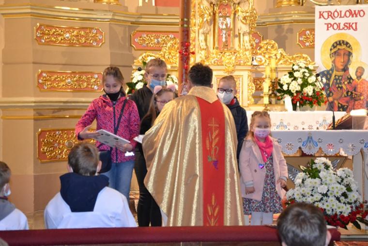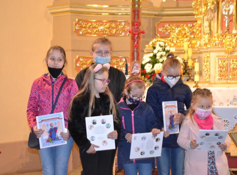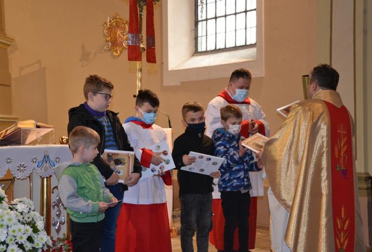 Za wykonanie poszczególnych zadań dzieciom przyznawane były punktu.  Zuzia Działak, Małgosia Gabryś, Nadia Gryglewska, Tymek Gryglewski, Bartek Majtas, Marysia Pyta, Staś Pyta, Eliza Szukalska, Kamil Szukalski, Michał Warzyński, Zosia Wróbel - to nasi liderzy, którzy wykonali wszystkie zadania.  W nagrodę otrzymali książeczki: dziewczynki „Polskie święte. Bohaterki dla dziewcząt”, zaś chłopcy „Polscy święci. Bohaterowie dla chłopców”. Dlaczego właśnie te, bo Rochowa Szkoła  pomaga w poznawaniu postaci świętego Rocha, tradycji odpustowych, ale także przekazuje wartości. Dzieci potrzebują wzorców osobowych, a te książeczki im je proponują.  Nieco mniej punktów zgromadzili: Marta Fabrowska, Sandra Fabrowska, Franek Kawałek. Oni otrzymali książeczki Perełka z aniołkiem. Wszyscy Autorzy prac otrzymali gromkie brawa.