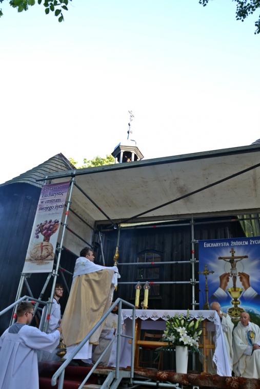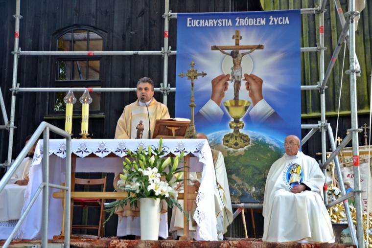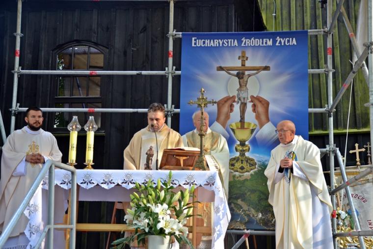 Msza Święta koncelebrowana rozpoczęła się przy ołtarzu polowym przy sanktuarium o godz. 18:30. Przewodniczył jej ks. proboszcz Krzysztof Ordziniak. Wraz z nim przy ołtarzu stanęli ks. kan. Andrzej Grabański, ks. kan. Grzegorz Ignor i  ks. wikariusz Marcin Walczak. Rozpoczynając Eucharystię ks. kan. Krzysztof zaznaczył, że w Najświętszej Eucharystii zawiera się całe dobro duchowe Kościoła. Sprawia to, że człowiek wierzący pragnie spotykać się ze swoim Panem. Zaakcentował, że dobrze, że tradycją jest, że zakończenie oktawy Bożego Ciała odbywa się przy sanktuarium św. Rocha, wśród grobów naszych bliskich. Mamy okazję wyrazić im wdzięczność modlitewną za przekazany dar wiary. Jednocześnie zachęcał zebranych na Mikstackim Wzgórzu, by postawili sobie pytanie: Co ja przekazuję następnemu pokoleniu?