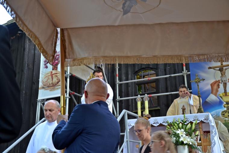 Po błogosławieństwie Najświętszym Sakramentem na cztery strony świata odbyło się poświęcenie wianków z ziół i kwiatów. To wyraz naszej wiary i zaufania Bogu. Przyniesione zostały pierwociny pól i łąk, by Bóg nam błogosławił, by nikomu nie zabrakło chleba powszedniego, bo tego będącego  pokarmem na życie wieczne nigdy nam  nie zabraknie. Obyśmy tylko chcieli się nim karmić…