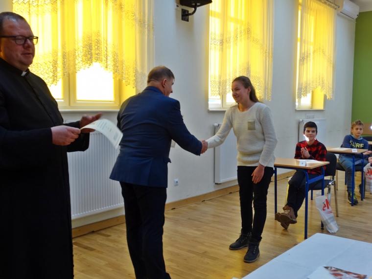 W konkursie wzięło udział 11 uczniów z kl. V, VI i VII z sześciu szkół z terenu gminy Krotoszyn: ZSP Benice, SP Biadki, SP Gorzupia, SP Kobierno, SP Lutogniew i SP Świnków. Uczestnicy wykazali się wysokim poziomem wiedzy. Po słodkim poczęstunku, zostały wręczone dyplomy i nagrody. I miejsce zajęły: Aleksandra Frala ze SP Kobierno i Maria Koper ze SP Świnków, III miejsce Klaudia Woźniak również ze SP Świnków. Wszyscy uczestnicy konkursu i ich opiekunowie otrzymali relikwie św. Jana Pawła II i Sługi Bożego Kardynała Stefana Wyszyńskiego.