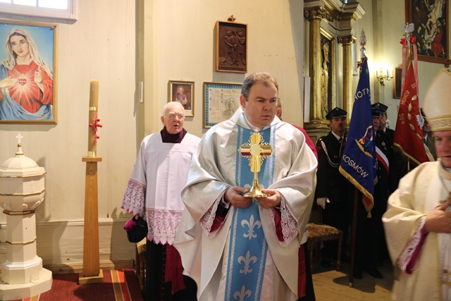 Bp Edward Janiak podczas uroczystej sumy odpustowej ku czci NMP Niepokalanie Poczętej w Kosmowie wprowadził do parafii relikwie św. Jana Pawła II.