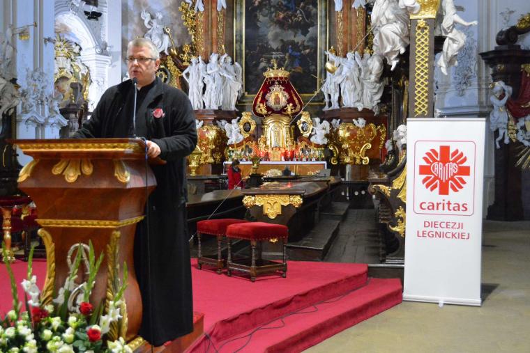 W południe Mszy św. w bazylice przewodniczył biskup legnicki Zbigniew Kiernikowski. Obecny był również bp Marek Mendyk, wieloletni duszpasterz osób niepełnosprawnych, księża z legnickiej Caritas oraz księża pracujący z osobami niepełnosprawnymi oraz pracujący w okolicznych parafiach.