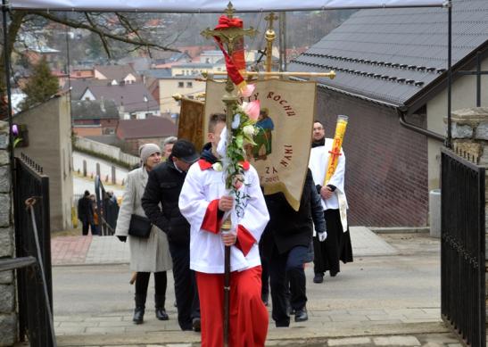Po odprawieniu Nowenny do Miłosierdzia Bożego z krzyżem, paschałem, figurą Chrystusa zmartwychwstałego, feretronami i sztandarami, wyszliśmy na ulice naszego miasteczka. W naszą drogę do Emaus wyruszyliśmy z naszymi duszpasterzami: ks. kan. Krzysztofem Ordzinikiem, ks. Krzysztofem Lipińskim i ks. Mateuszem Puchałą. Ks. Krzysztof Lipiński niósł zapalony paschał, natomiast ks. kan. Krzysztof wraz z ks. Mateuszem prowadzili nabożeństwo Drogi Światła. Pierwsze spotkanie ze zmartwychwstałym Panem rozważaliśmy przed kościołem pw. Świętej Trójcy. Warto dodać, że wspólnota parafialna przygotowuje się do obchodów 100-lecia jego konsekracji. Ostatnie, przy Diecezjalnym Sanktuarium Świętego Rocha. Sanktuarium położone jest w centralnym punkcie cmentarza. Tu wielu uczestników procesji ma groby swoich bliskich. Dla nich przesłanie “Pan zmartwychwstał” nabiera tu szczególnego znaczenia. Daje nadzieję na spotkanie z tymi, którzy poprzedzili nas w pielgrzymce do Ojczyzny niebieskiej.