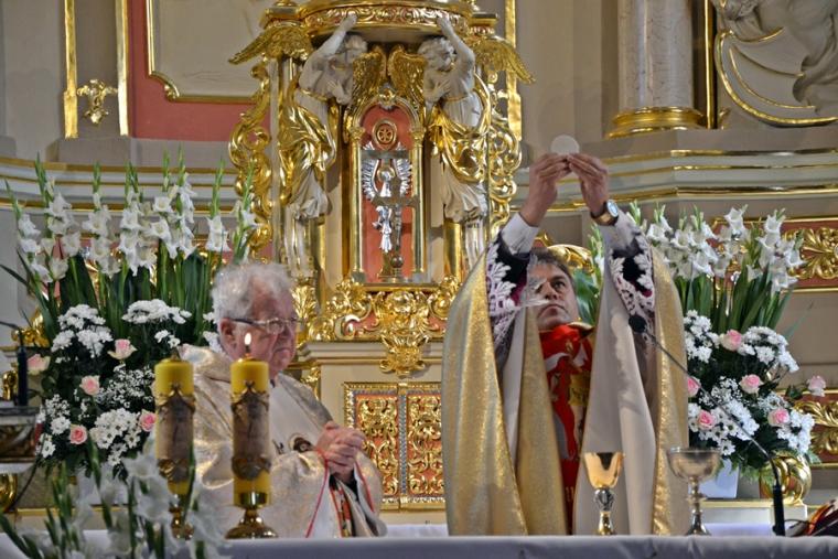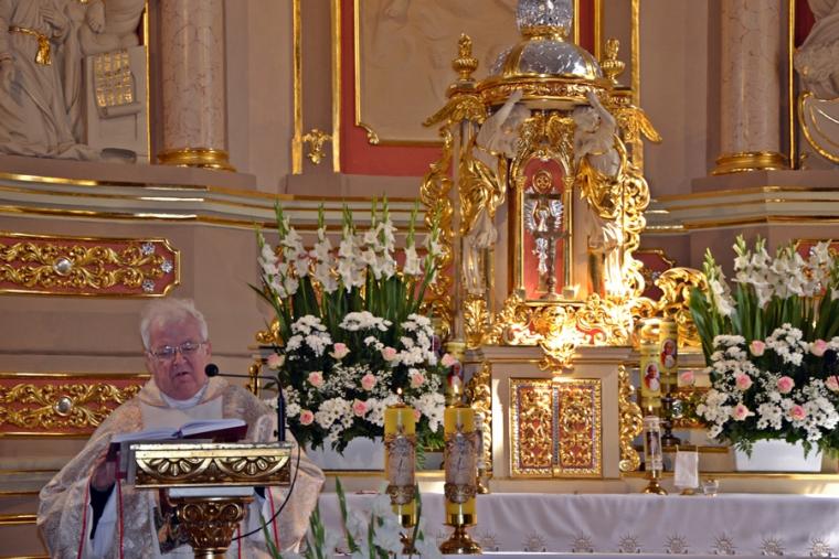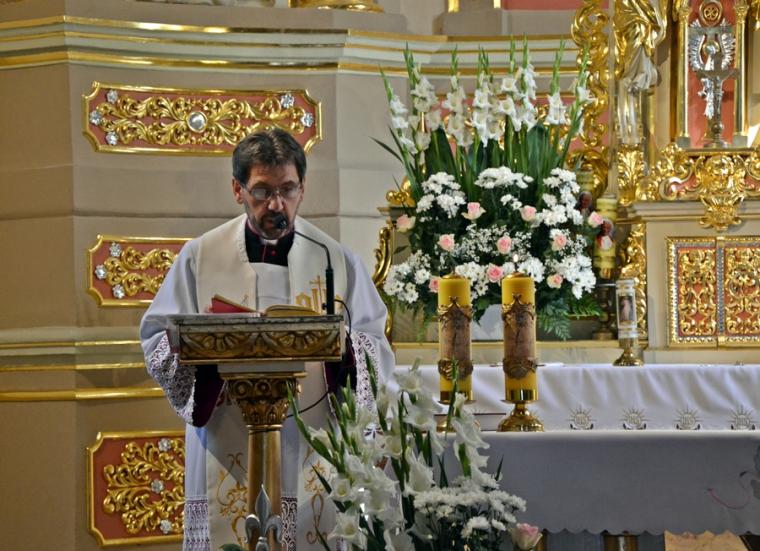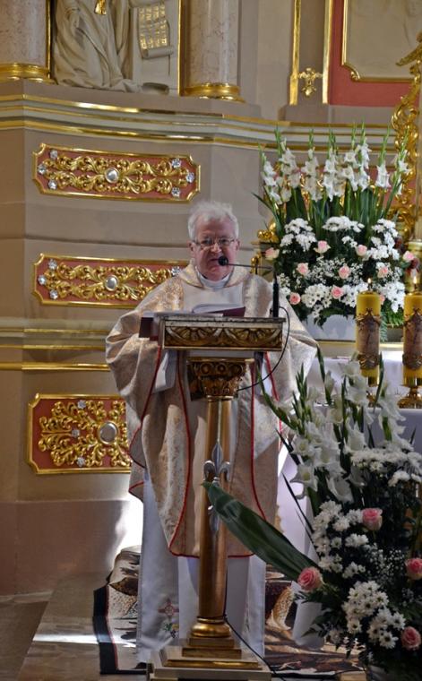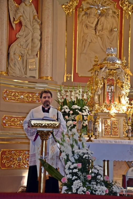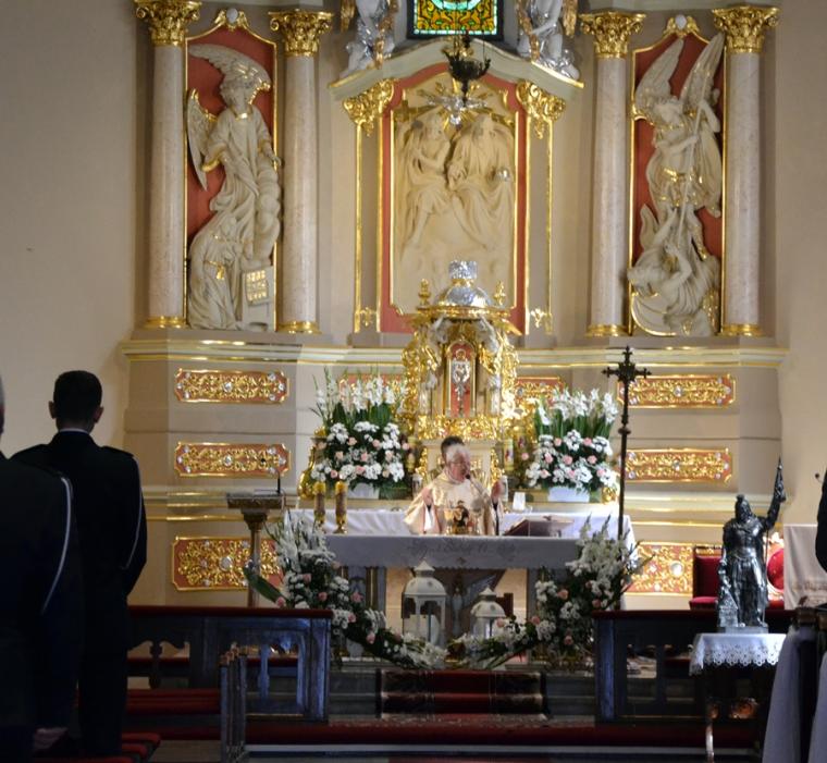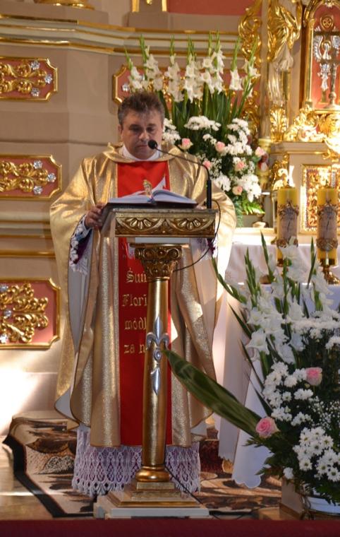 W homilii ksiądz kanonik Mirosław zwracając się do zebranych w mikstackim wieczerniku, a zwłaszcza do druhen i druhów strażaków  podkreślił, że 90 lat istnienia OSP to droga historii, różnych wydarzeń, ale przede wszystkim służby. Podkreślił, że takie obchody są wydarzeniem radosny, ale i skłaniającym do refleksji, wspomnień, także tych związanych z Ojczyzną. Jak podkreślił, nie da się oddzielić służby strażaka od służby Ojczyźnie- Polsce,  małej Ojczyźnie, parafii i rodzinie. Kaznodzieja zaakcentował, że tam gdzie w rodzinie jest strażak, jest gotowość, aby dawać świadectwo. Zaznaczył, że wspomnienia minionych lat są także wezwaniem do kolejnych lat służby. Następnie ksiądz kapelan strażaków nawiązując do sztandaru trzymanego przez strażaków, który ma siedemdziesiąt lat zaakcentował, że  jest on świadkiem wielu wydarzeń strażackiej wspólnoty. Kontynuując kaznodzieja przypomniał najważniejsze wydarzenia z życia patrona strażaków świętego Floriana akcentując jego wierność zasadom, prawdzie. Dodał, że my ludzie żyjący  w XXI wieku także nieustannie musimy wybierać to co jest prawdą. W dalszej części podkreślił, że święty Florian nie wyrzekł się dobroci i wierności Bogu. Kroczył drogą przykazań. Zaakcentował, że jest to podstawa wierności, którą powinien żyć strażak. Nawiązując do napisu, który znajduje się na nowym sztandarze „Bogu na chwałę ludziom na pożytek”  podkreślił, że trzeba o tym przypominać, zwłaszcza w czasach współczesnych, gdyż wymazuje się z przestrzeni publicznej Boga. „ Tyle jest innych możliwość, a wy chcecie na tym nowym sztandarze, który niech służy jak najdłużej, mimo różnych trudności, które będą, nie tylko mieć napisane, ale myślę, że także tak żyć, tak postępować:  Bogu na chwałę ludziom na pożytek,  bo tylko z tej prawdziwej miłości Bożej można czerpać i służyć miłością dla bliźniego”- dodał kaznodzieja. W dalszej części homilii ksiądz kanonik Mirosław nawiązał do Święta Podwyższenia Krzyża Świętego.  Przywołał akcję Polska pod Krzyżem, podkreślając wielkie poruszenia ludzi wierzących, którzy chcą jak najliczniej spotkać się pod Krzyżem. Następnie ksiądz kapelan przywołał miejsce swojej posługi Parzynów i Krzyż Milenijny, gdzie od niedawna znajdują się relikwie Krzyża Świętego. Będzie tam  także czuwanie w domu rekolekcyjnym Jana Pawła II. Nawiązując do sztandaru strażaków ksiądz kapelan podkreślił, że on także będzie jednoczył ludzi. Napis na sztandarze wskazuje ,że stajemy pod nim jako ludzie prawdy, ludzie wierzących.„Stanąć  pod tym co ma wartość, do tego się przyznawać, to być odważnym jak święty Florian” – dodał kaznodzieja. Kontynuując zachęcał, by ten dzień świętowania pozostał w pamięci jako dzień stawania pod sztandarem, ale  i pod krzyżem. Zaznaczył, że znak krzyża jest wyznaniem naszej wiary. Zachęcał do umiejętności radowania się tym co otrzymujemy, ale także i do niesienia tej radości innym. Podkreślił potrzebę bycia gotowym do niesienia pomocy. Ksiądz kapelan życzył strażakom, by ten sztandar ich jednoczył, a figura świętego Floriana wzywała do niesienia pomocy. Składając życzenia strażakom ksiądz kanonik Mirosław powiedział: „ Życzę, abyście służyli, aby  nie zabrakło nowych członków, bo dzisiaj czasami trudno o młodych ludzi, o młodych strażaków, bo to jest odpowiedzialność, a także czas, czas poświęcony dla drugiego, dla innych, czas który jest wartością daną drugiemu. Więc radujcie się  niech ten czas będziecie rzeczywiście znakiem wdzięczności za to wszystko coście przeżyli  i niech dalej kolejne lata będą służbą dla dobra wspólnoty, dla dobra parafii i  tych, do których zostaniecie także wezwani. Szczęść Wam Boże! Wiele ważnych słów zostało wypowiedzianych w tej homilii wskazujących przede wszystkim na potrzebę służby, ale także i wierności Bogu i zasadom wiary. Po homilii ksiądz kapelan odmówił specjalną modlitwę i poświecił  nowy sztandar i figurę św. Floriana  dla jednostki OSP w Mikstacie. Figura Świętego Floriana, patrona strażaków  zostanie umieszczona przy remizie OSP w Mikstacie.