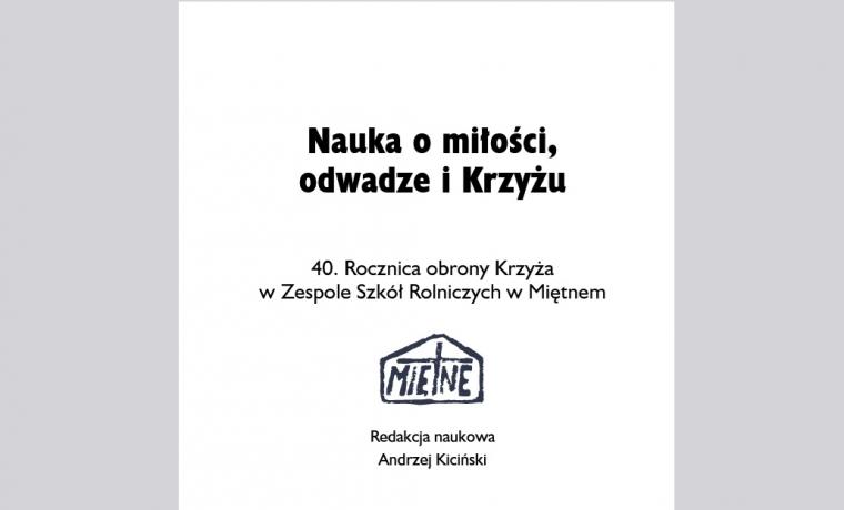 Katedra Katechetyki Szczegółowej i Współczesnych Form Przekazu Wiary wraz z Wydawnictwem „Jedność” przesyła najnowszą książkę pt. „Nauka o miłości, odwadze i Krzyżu” przygotowaną w 40. rocznicę zwycięskiej obrony Krzyża w Zespole Szkół Rolniczych w Miętnem.