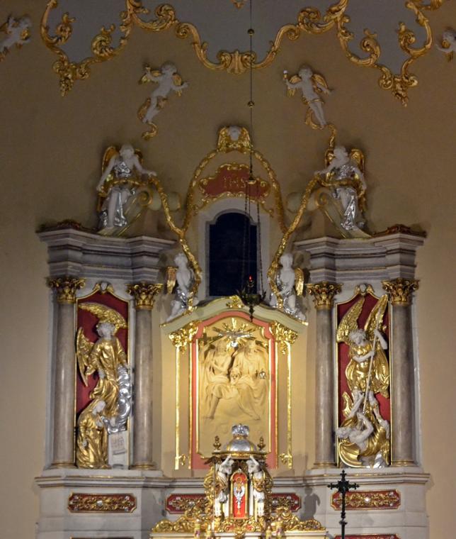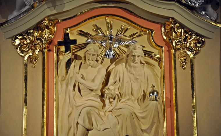Płaskorzeźba Trójcy Świętej w ołtarzu głównym mikstackiej fary
