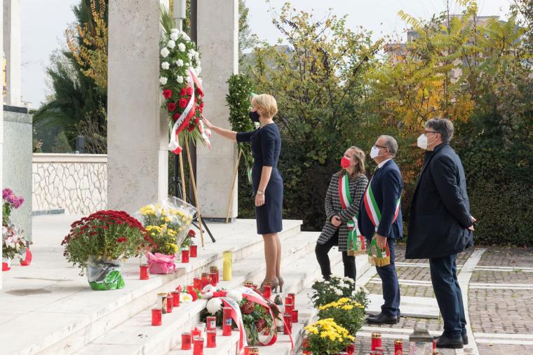 Po Mszy św. nastąpiło złożenia wieńców na Polskim Cmentarzu Wojennym, następnie na Cmentarzu Commonwealth oraz pod tablicą na Porta di Strada Maggiore.
