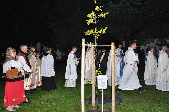 O godz. 18:30 sprawowana była w sanktuarium Eucharystia, której przewodniczył ks. kan. Adam Kosmała, proboszcz parafii rzymskokatolickiej pw. Narodzenia Najświętszej Maryi Panny w Kotłowie. Współcelebransem był ks. kan. Krzysztof Ordziniak. Mszę św. tradycyjnie już w tym przedodpustowym czasie poprzedził śpiew Godzinek o św. Rochu Wyznawcy. Ksiądz kan. Adam wygłosił do zebranych homilię. Przedmiotem rozważania było błogosławieństwo zawarte w słowach „ Błogosławieni, którzy się smucą, albowiem oni będą pocieszeni…”