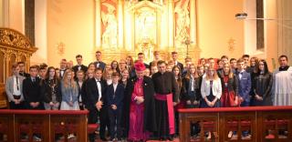 Druga część homilii skierowana była przede wszystkim do kandydatów do bierzmowania. Podkreślił, że sam moment bierzmowania trwa, krótko, jednak pozostawia trwały ślad w duszy człowieka. Celebrans dodał: „Choć ten sakrament przyjmuje się raz w życiu, On Duch Święty was już nigdy nie opuści. Głosem waszego sumienia będzie wam podpowiadał co należy czynić, jak należy postępować, ale Pan Bóg  nie zniewala człowieka. Jeżeli ktoś chce ma wolną wolę do tego stopnia jest człowiek wolny, że może odwrócić się od Pana Boga, pogardzić Bogiem”. Nawiązując do słów Ewangelii Biskup Ordynariusz przekonywał  młodych, że jeśli przyznają się do Jezusa, Ten nigdy ich nie opuści. Pan Bóg potrzebuje ludzi. Jesteście potrzebni Kościołowi przekonywał młodych hierarcha,  podkreślając, że świat potrzebuje świadków wiary. Podkreślił, że takimi świadkami był bł. ks. Jerzy Popiełuszko, ale i patron dnia św. Jan Kanty. Kontynuując ks. biskup podkreślił, że jest wiele dróg prowadzących do Boga. Zaznaczył jednak, że aby życie człowieka wydało dobre owoce potrzebni są świadkowie wiary , ale także jedność oddziaływań Kościoła, rodziny i szkoły. Sakramenty, objawienie przekazana na kartach Pisma Świętego to jak wskazywał celebrans pewna droga do Boga, dodając jednocześnie,  „ale jest jeszcze trzecia droga sprawdzona, która prowadzi do Boga, to jest drugi człowiek”. Wskazywał młodym, że należy tak iść przez  życie, żeby nikt przeze mnie nie płakał, żeby być otwartym, pomocnym, bez względu na światopogląd, różnice, język, bo każdy człowiek stworzony jest na obraz i podobieństwo Boże. I chciałbym, żebyście może inne rzeczy zapomnicie z tej uroczystości, ale tego nie zapominajcie, że nie ma przypadkowych spotkań, że każdy człowiek jest dla mnie wezwaniem”. Następnie ks. biskup zaapelował do rodziców, by byli świadkami wiary dla swoich dzieci. Podkreślił znaczenie dziadków w formowaniu religijności wnuków. Kończąc celebrans podziękował wszystkim, którzy w   jakikolwiek sposób przyczynili się do zorganizowania tak  pięknej uroczystości.