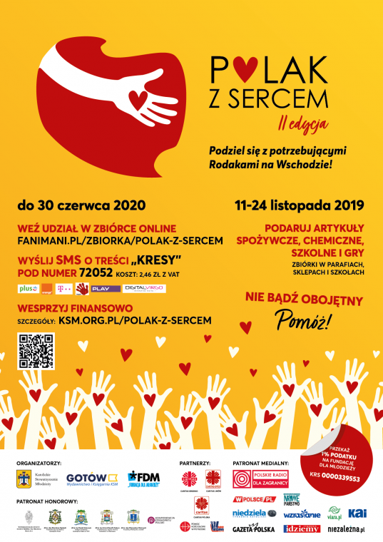 Również Przewodniczący Konferencji Episkopatu Polski abp Stanisław Gądecki podziękował w wideoprzesłaniu młodzieży KSM-owskiej za zaangażowanie w pomoc Polakom żyjącym na Wschodzie. „To bardzo ważne, że oprócz wsparcia materialnego, młodzież buduje relacje z naszymi rodakami na Wschodzie. Z serca błogosławię akcji +Polak z sercem+ i zapewniam o mojej modlitwie” – powiedział abp Gądecki, który objął akcję patronatem honorowym.