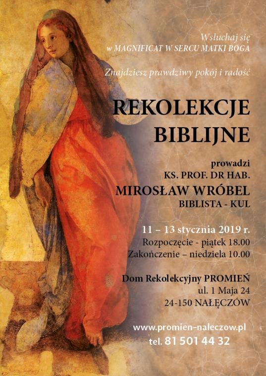 REKOLEKCJE BIBLIJNE W NAŁĘCZOWIE w zimowy weekend 11-13 stycznia 2019 r. Rekolekcje MAGNIFIKAT W SERCU MATKI BOGA prowadzi Ks. prof. dr hab. Mirosław Wróbel dyrektor Instytutu Nauk Biblijnych KUL.