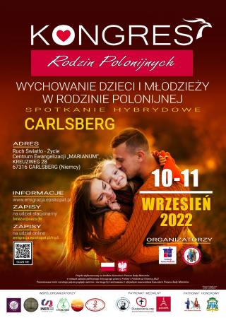 Zapraszamy na V Kongres Rodzin Polonijnych, który odbędzie się w dniach 10-11 września 2022 r. w formie hybrydowej i poświęcony będzie tematyce: "Wychowanie dzieci i młodzieży w Rodzinie Polonijnej". Kongres odbędzie się w Carlsbergu (Niemcy) w Międzynarodowym Centrum Ewangelizacji "Marianum". W Kongresie będzie można uczestniczyć także w formie online za pośrednictwem aplikacji zoom. Organizatorami V Kongresu Rodzin Polonijnych jest Polonijna Rada Rodziny przy Delegacie KEP ds. Duszpasterstwa Emigracji Polskiej oraz Fundacja „Pomoc Rodzinie”. Serdecznie zapraszamy!