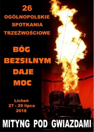 W dniach 27-29 lipca br. w Sanktuarium Maryjnym w Licheniu Starym odbędą się 26. Ogólnopolskie Spotkania Środowisk Trzeźwościowych. Hasłem tegorocznego spotkania będą słowa „Bóg bezsilnym daje moc”.