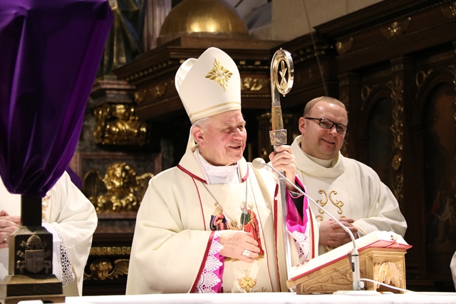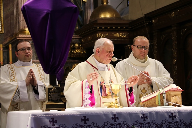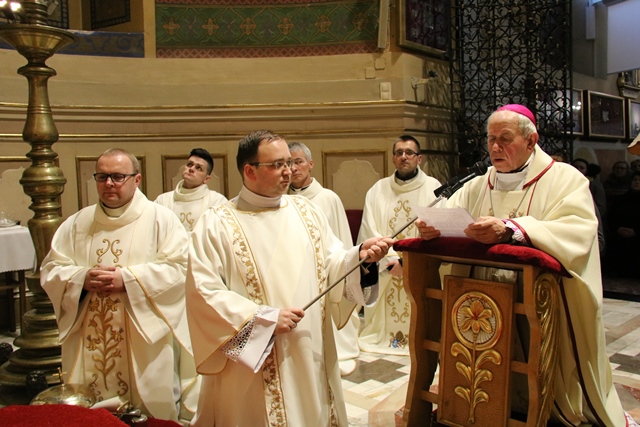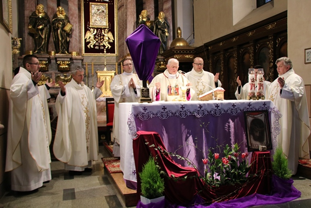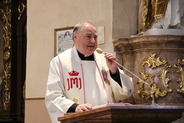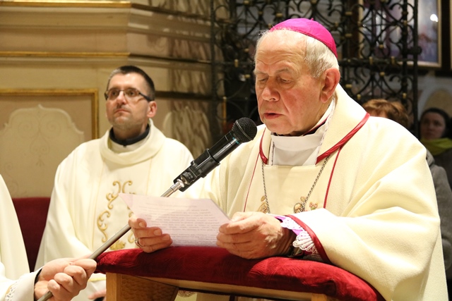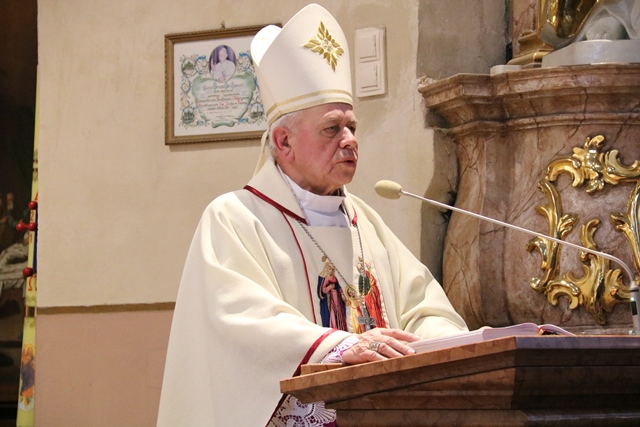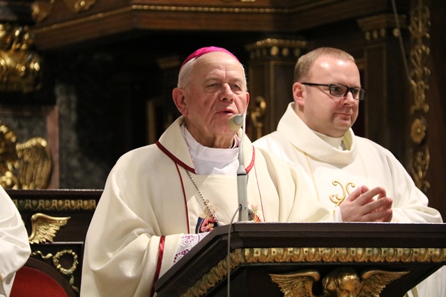 Przekonywał, że Maryja i św. Józef są nierozłączni. - Bóg wybrał Maryję i Józefa, żeby byli małżonkami i rodziną Jezusa, naszego Zbawiciela. Tych dwoje jest razem w zamyśle zbawczym Boga. Niech Maryja i św. Józef wezmą każdego z nas za ręce, tak jak na tym obrazie za ręce biorą Jezusa, i poprowadzą do Jezusa, do Boga, do zjednoczenia z Bogiem. Gdy skończy się to życie tutaj na ziemi niech nas Maryja i Józef zaprowadzą do Boga i to będzie radość, to będzie szczęście, to będzie niebo – mówił bp Napierała.
