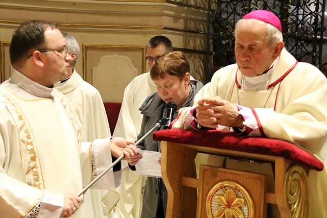 Po komunii św. w Kaplicy Cudownego Obrazu św. Józefa bp Stanisław Napierała i krajowa animatorka Wspólnot Nieustającego Różańca Świętego Urszula Strynowicz zawierzyli św. Józefowi i Matce Bożej Gietrzwałdziej koła Żywego Różańca z diecezji kaliskiej i Wspólnoty Nieustającego Różańca z całej Polski.