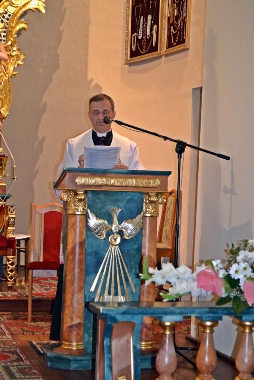 Rozpoczynając homilię ks. Piotr przywołał słowa św. Jana Pawła II wypowiedziane podczas pierwszej Jego pielgrzymki do Polski „ Musicie być mocni tą mocą, którą daje wiara”. Kontynuując podkreślił, że wszyscy potrzebujemy duchowego umocnienia. To u Chrystusa, zwłaszcza we współczesnym świecie musimy szukać umocnienia i siły. Imponują nam często ludzie, którym nikt niczego nie narzuca, nie stawia barier co wolno, a czego nie. Kaznodzieja podkreślił, że długo tęskniliśmy za wolnością. Ks. Piotr przypominając czas, gdy Polska wchodziła do Unii Europejskiej, zaakcentował, że sądzono, że będzie to szansa na wprowadzenie wartości chrześcijańskich do innych krajów, niestety odwróciły się one od chrześcijaństwa. Uchwala się prawo sprzeczne z chrześcijaństwem, promuje związki homoseksualne, w wielu krajach Europy Zachodniej zalegalizowana jest eutanazja. Dodał, że wartości płynące z Zachodu uderzają w rodzinę. Kaznodzieja zwrócił uwagę, że proces dechrystianizacji dotyczy przestrzeni publicznej. Przypomniał, że u progu pontyfikatu Papież Jan Paweł II wołał: Otwórzcie drzwi Chrystusowi. Podkreślił, że życie człowieka nie może przynosić dobrych owoców jeśli nie jest zakorzenione w Chrystusie. Kontynuując rozważanie ojciec rekolekcjonista opowiedział o cudzie Eucharystycznym w Sokółce.