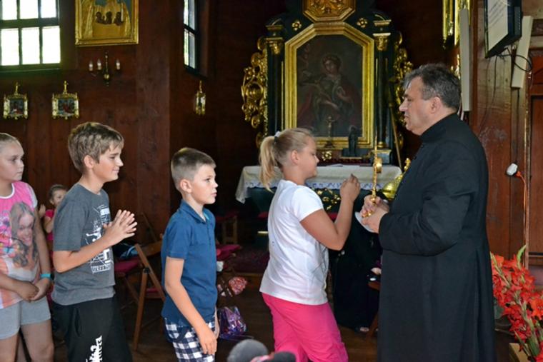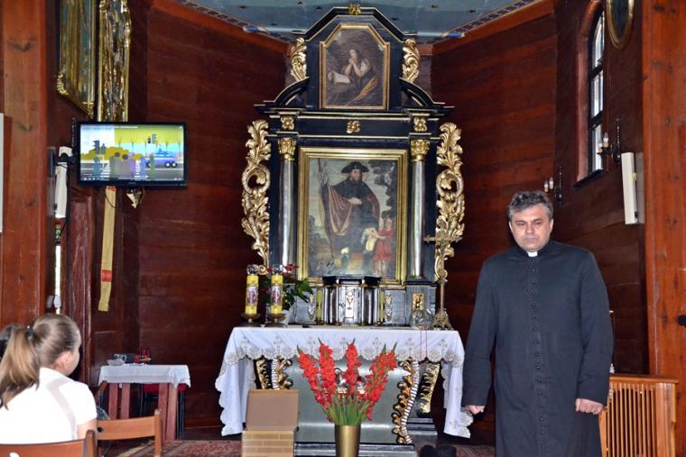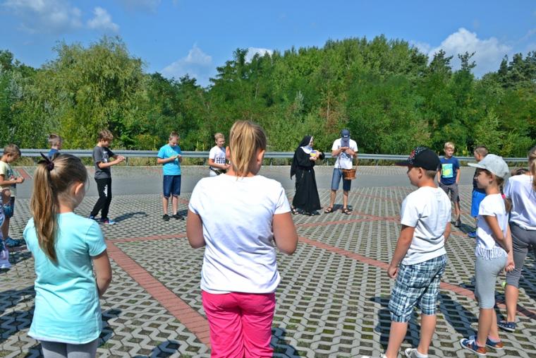 Jak okazało się w drugim dniu spotkań, dzieci sumiennie wykonały pracę domową. Było jeszcze jedno zadanie, gdyż w trakcie tegorocznej Szkoły pojawił się kufer dziedzictwa. Podczas poszczególnych dni dzieci będą wkładały do niego rysunki, fotografie, opisy, tego co składa się na nasze dziedzictwo kulturowe. Na początek dzieci miały przyjrzeć się dziedzictwu należącemu do nich. Kufer w czwartkowe przedpołudnie zaczął się wypełniać. W tym drugim dniu w Rochowej Szkole był oczywiście czas na modlitwę nowennową podczas której ks. kan. Krzysztof odczytywał przyniesione przez młodych intencje. Potem dzieci uczciły relikwie św. Rocha. Po modlitwie przyszedł czas na wspólny śpiew. W jego prowadzeniu niezastąpiona okazała się s. Małgorzata, która pewnie już do końca spotkań w Rochowej Szkole będzie dbała o to, by rozśpiewać dzieci, a także organizować dla nich zabawy ruchowe.Ta wakacyjna szkoła została zorganizowana m.in. po to, by dzieci poznały życie św. Rocha, a także wartości, którymi kierował się On w swoim życiu. W tym celu ksiądz kustosz wykorzystał fragment programu „Ziarno” poświęconego św. Rochowi. Dodajmy, że fragmenty tego programu były realizowane na terenie naszej parafii. Uczestniczyli w nim młodzi Mikstaczanie. W drugim dniu omówione zostały atrybuty, z którymi na obrazach i rzeźbach przedstawiany jest św. Roch. Stało się to impulsem do wskazania podobieństw i różnic w ikonograficznych przedstawieniach św. Rocha i św. Jakuba. Podczas spotkania dzieci obejrzały film animowany „N- jak niewidomy”, w którym mogły zobaczyć w jaki sposób można pomagać osobom niewidomym bądź niedowidzącym. Ksiądz kustosz omawiając strój św. Rocha zwrócił uwagę na laskę pielgrzymią. Z filmu dzieci dowiedziały się, że biała laska może być bardzo pomocna dla osoby niewidomej. Nie zabrakło także opowieści o psach przewodnikach osób niewidomych. Film był forma przygotowania do spotkania z gościem, który tego dnia odwiedził uczestników Szkoły Świętego Rocha. Mamy nadzieję, że spotkanie to na długo pozostanie w ich pamięci. Kim był ten niezwykły gość? Otóż na spotkanie z młodymi przybyła Pani Gabriela Przygoda. Pani Gabriela jest osobą niewidomą, straciła wzrok mając 20 lat. Podczas spotkania Pani Gabrysia przedstawiła się w kilku zdaniach, a następnie bardzo chętnie odpowiadała na pytania młodych, trzeba przyznać, że było ich bardzo wiele. Młodzi pytali m.in. o to jak radzi ona sobie z czynnościami dnia codziennego takimi jak sprzątanie, gotowanie, prasowanie, mycie, poruszanie się po mieszkaniu, dobieranie kolorystyki ubrania, pakowanie walizki na wyjazd. Pani Gabrysia podkreślała, że pomocne są tu często zdobycze techniki. Podkreśliła, że osoby niewidome mają z reguły bardzo uporządkowane życie. Troska o ład ułatwia im funkcjonowanie, gdyż wiedzą wtedy gdzie mogą znaleźć konkretne przedmioty. Jest jeszcze jedna rzecz, którą należy powiedzieć o gości. Pani Gabriela została obdarowana przez Pana Boga pięknym głosem. Dane nam było posłuchać w sanktuarium pieśni Ave Maria Jasnogórska Pani. Może kiedyś uda się Pani Gabrysi wydać płytę, życzymy jej tego z całego serca. Po licznych pytaniach zadanych przez młodych ksiądz kan. Krzysztof zapytał Panią Gabrysię co chciałaby powiedzieć młodym ludziom. Zacytujmy to przesłanie: „Żeby żyli każdym dniem, żyli tak, żeby nikt przez nich nie płakał, bo jeżeli jest się młodym nie zwraca się uwagi na to co się robi, krzywdzi się ludzi, to to wszystko potem wraca, jeżeli się ich nie krzywdzi, a stanie się nam krzywda to ma się pomoc z każdej strony, ale jeśli się tego nie zauważa i tego nie robi to wtedy jest naprawdę ciężko”.