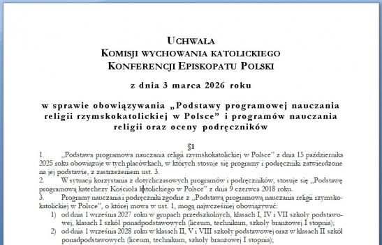w sprawie obowiązywania „Podstawy programowej nauczania religii rzymskokatolickiej w Polsce” i programów nauczania religii oraz oceny podręczników (z dnia 3 marca 2026 roku)