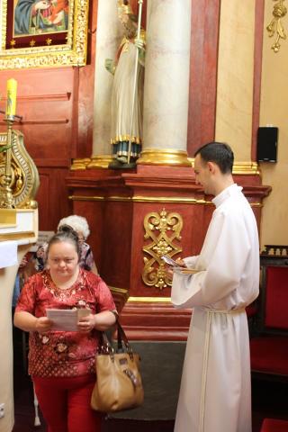 Do wielu z nich zapraszamy bliskich nam ludzi, szczególnie wtedy, gdy przeżywamy radość. Trudniej, gdy dotyka nas cierpienie, bo tu naprawdę trzeba nam przyjaciół wypróbowanych. Co roku takich wypróbowanych przyjaciół, my osoby niepełnosprawne, z różnych stron diecezji kaliskiej, spotykamy zawsze w sobotę przed ostatnią niedzielą sierpnia, kiedy wszystkie drogi prowadzą do Lutogniewa, a w sercu pojawia się pragnienie aby jeszcze raz spojrzeć w oczy Matki Bożej Pocieszenia. Pragnienie jest tym większe, bo wiemy, że Ona zawsze zauważa nasze problemy, może nam wiele wyprosić u Jezusa i co najważniejsze wzywa nas do tego, by iść za Nim, by trwać w Nim i wypełniać Jego przykazania. No to wyruszyliśmy w sobotni poranek sprzed kościoła św. Apostołów Piotra i Pawła w Krotoszynie w XVII Pielgrzymce osób niepełnosprawnych do Sanktuarium Matki Bożej Pocieszenia w Lutogniewie. Przewodnikiem tej wyjątkowej grupy był ks. kan. Grzegorz Jóźwicki proboszcz parafii p. w. św. Apostołów Piotra i Pawła w Krotoszynie, którego wspomagali ks. Michał Włodarski, ks. Piotr Dobrychłop oraz ks. Krzysztof Dończyk. W tych wyjątkowych rekolekcjach w drodze towarzyszyły nam także nasze rodziny, jak i przyjaciele, którzy często rezygnując czasem z ciekawszej formy spędzenia wolnego czasu, postanowili pomóc nam w spełnieniu naszego marzenia. Nasze pielgrzymowanie to przede wszystkim modlitwa, wyrażana również wspólnym śpiewem, która jest także byciem z drugim człowiekiem. Pielgrzymować to też unieść swoją słabość, niepełnosprawność, przyjąć pomoc drugiego człowieka. Pielgrzymować znaczy w końcu dojść do celu ~ ucieszyć się z wypełnionej obietnicy, z wyrażonej duchem i ciałem modlitwy. Na powitanie strudzonych, ale jakże szczęśliwych pielgrzymów, wyszedł ks. kan. Łukasz Żurawski, kustosz tutejszego Sanktuarium, wraz z klerykami; Karolem Raczakiem, Jędrzejem Grobelnym, Mikołajem Wawrzyniakiem aby jeszcze uroczyściej przy bijących dzwonach, wprowadzić nas przed obraz Matki Bożej Pocieszenia. Po powitaniu przez księdza kustosza, nie kryjącego swej radości z naszej obecności i przedstawieniu grup pielgrzymkowych oraz osób, które przybyły indywidualnie z terenu całej diecezji kaliskiej, w oczekiwaniu na najważniejsze spotkanie tego wyjątkowego dnia, po raz kolejny wyraziliśmy swoją radość we wspólnym śpiewaniu. O godzinie 10:00 uczestniczyliśmy w uroczystej Eucharystii, którą odprawił ks. kan. Grzegorz Jóźwicki. W koncelebrze stanęli: ks. Michał Włodarski, ks. Krzysztof Dończyk. Ks. kan. Grzegorz w słowie skierowanym do pielgrzymów, przypomniał nam o darze wdzięczności wobec osób które towarzyszą nam w naszym codziennym pielgrzymowaniu. Niestety, w zabieganiu, w poczuciu samowystarczalności i bezsprzecznych racji często zapominamy o swoim opiekunie, może trochę słabszym od nas, może chodzącym o kulach, jeżdżącym na wózku. Trzeba Bogu dziękować za Anioły, które do nas posyła, a chcące dawać nam oparcie, gdy jest ciężko, gdy trud codzienności zbyt mocno nas przygniata. Dziękować za każdego jednego człowieka, którego Bóg stawia w konkretnym celu na naszej drodze, tego znanego i nieznanego. Po zakończonej Eucharystii jeszcze raz swoje słowa skierował do nas ksiądz kustosz, który zaprosił nas do uczczenia relikwii świętej Siostry Faustyny Kowalskiej, wspólnego odmówienia Litanii do Matki Bożej Pocieszenia, a także do przejścia wokół ołtarza. Nasze radosne i pełne wzruszeń spotkanie zakończyliśmy w ogrodach proboszczowskich, gdzie w „Altance u Plebanka”, czekały na nas pyszne zupy oraz smażone kiełbaski, przygotowane przez tutejszych parafian oraz wiele innych wyjątkowych atrakcji.