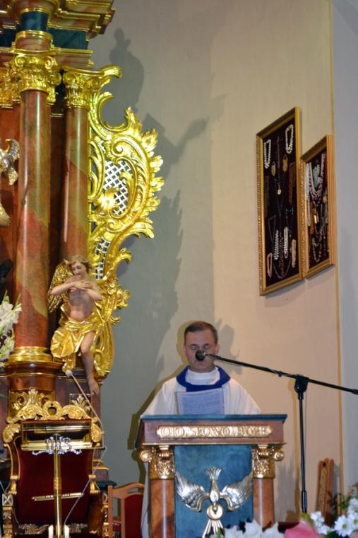 Kończąc ks. Piotr powiedział: "Dziękujemy Jezusowi, że możemy tutaj spoglądać na Jego Matkę, Panią Kotłowską, dziękujemy za tę świątynię. Dziękujemy za ks. proboszcza Adama, który tak gorliwie troszczy się o wasze zbawienia. Dziękuję wreszcie wam tutaj obecnym za postawę, za świadectwo życia pomimo tego bólu i zranienia jakiego doświadczyliście na waszej ziemi to jednak wznosicie się ku niebu (…). Niechaj Matka Najświętsza czuwa nad waszym życiem, nad waszymi domami, nad waszymi rodzinami wraz ze św. Józefem. Amen”.