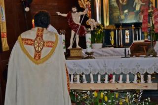 W Niedzielę Miłosierdzia Bożego w parafii zostały odprawione dwie Msze Święte z prośbą o łaski potrzebne dla jego czcicieli. Pierwsza sprawowana była przez ks. kan. Krzysztofa Ordziniaka o godz. 11:00 w kościele farnym. Jest tradycją w naszej parafii, że uczestniczą w niej dzieci. Podczas homilii ks. kanonik nawiązał do słów Ewangelii i zachęcał, zarówno dzieci jak i dorosłych, do troski o rozwój swojej wiary. Nie mogło zabraknąć nawiązania do obchodzonej Niedzieli Miłosierdzia Bożego. Dzieci otrzymały obrazki z Jezusem Miłosiernym na odwrocie których, znajdowały się słowa modlitwy Koronki do Miłosierdzia Bożego. Ich tekst przydał się najmłodszym parafianom, gdyż po zakończonej Eucharystii przy wystawionym Najświętszym Sakramencie odmówiona została właśnie Koronka i Litania do Miłosierdzia Bożego. Trudno wyobrazić sobie ten dzień bez modlitwy w Godzinie Miłosierdzia Bożego. Tę szczególną godzinę część parafian przeżywała w Diecezjalnym Sanktuarium Świętego Rocha. Tu ks. kan. Krzysztof poprowadził Koronkę do Miłosierdzia Bożego. Zanim rozpoczęliśmy modlitwę kapłan przywołał fragmenty z Dzienniczka s. Faustyny. Były wśród nich następujące słowa Jezusa: „Pragnę, aby święto Miłosierdzia, było ucieczką i schronieniem dla wszystkich dusz, a szczególnie dla biednych grzeszników. W dniu tym otwarte są wnętrzności miłosierdzia Mego, wylewam całe morze łask na dusze, które się zbliżą do źródła miłosierdzia Mojego. Która dusza przystąpi do spowiedzi i Komunii świętej, dostąpi zupełnego odpuszczenia win i kar”( 699). Czy można nie skorzystać z tego szczególnego czasu łaski? W czasie Koronki prosiliśmy Pana Jezusa o miłosierdzie dla zmarłych spoczywających na otaczającym Diecezjalne Sanktuarium Świętego Rocha cmentarzu, a także za zmarłych polecanych w wypominkach rocznych. Ich nazwiska wyczytywał ks. kanonik pomiędzy poszczególnymi częściami modlitwy. Po Koronce do Miłosierdzia Bożego w sanktuarium odprawione zostało nabożeństwo Drogi Światła. Nabożeństwo to chyba już na stałe wpisało się do scenariusza obchodów Święta Miłosierdzia Bożego w naszej parafii. Niesie ze sobą ono tyle nadziei. Było okazją do przeżycia 14 spotkań ze Zmartwychwstałym Panem, ale i czasem refleksji nad tym, za co powinniśmy przeprosić Jezusa. Przy rozważaniu poszczególnych spotkań od paschału odpalane były kolejne świeczki. Tuż przed błogosławieństwem zapłonęła czternasta. Po nabożeństwie Drogi Światła w sanktuarium odprawiona została kolejna Msza Święta w intencji czcicieli Miłosierdzia Bożego z Mikstatu i Komorowa.